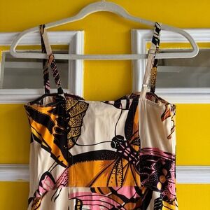 Betsey Johnson Butterfly corset y2k Print Mini Dress Sweetheart Button Front 6