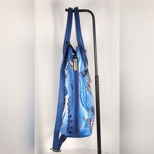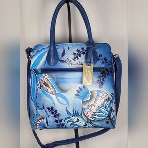 Anuschka Blue Hand-Painted Leather Satchel Crossbody Bag