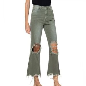 Altar’d State Aubrielle Straight Leg Jeans distressed army green size 27