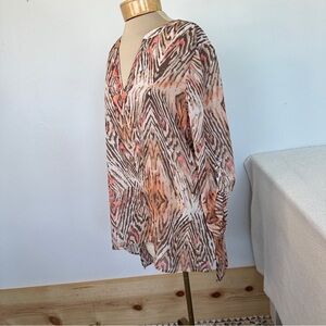Travelers Collection By Chico's Women Hi Low Top Sz 2 Animal Print 3/4 Sleeve