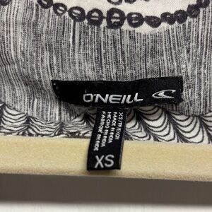 Chic O'Neill top with black and cream patterns. Ideal for casual outings. Button closure in back. Cute little cut out design. Longer in back.