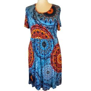 DB Moon Women's Blue Orange Mandala Print Tunic Dress Size L