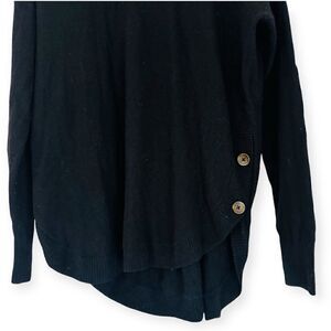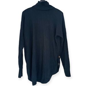 Oversized turtleneck sweater has a shirttail hem with a subtle side-button detail.