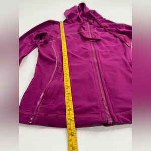 Lululemon Hooded Define Jacket Zip Front Logo Fuschia Women Sz 8 . Cosmetic scuffing on the plastic ends of the drawstrings. No other flaws noted. Great condition.