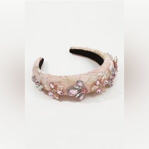 Add a touch of elegance to your look with this pink floral embellished headband. Perfect for special occasions or everyday wear. Rhinestone, embroidery.