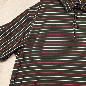 Travis Mathew Polo Shirt Mens XL Black Striped Golf Performance Short Sleeve