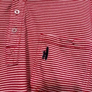JOHNNIE-O Mens XL Red/White Stripe POLO Shirt 100% Cotton