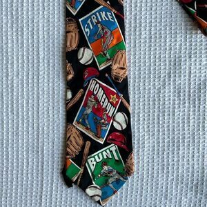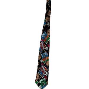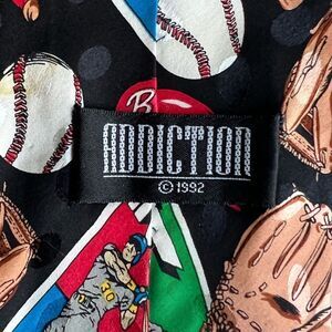 Vintage 1992 Baseball Addiction 100% Silk Black Men Tie
