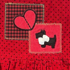 Vtg SAMARA Dress Girls 2T Red Heart Scottie Dog Polka Dot Corduroy Embroidery