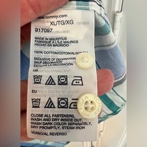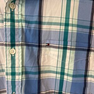 Tommy Hilfiger Blue and Green Plaid Button Down Shirt Size XL