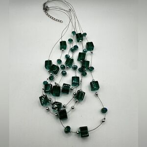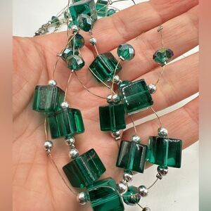 SALE! Multi-strand wire, Green Square and Faceted Glass Beaded Necklace!