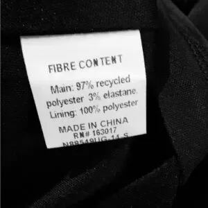 Main: 87% reclaimed polyester 3% elastane, Lining: 100% polyester