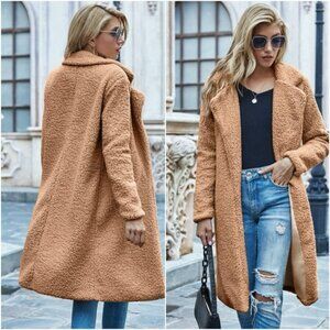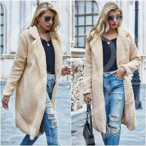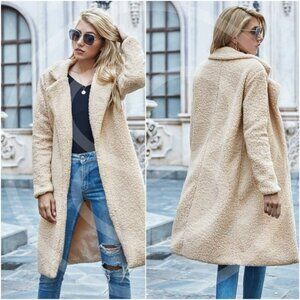 Cozy Cream vegan fur long teddy jacket coat