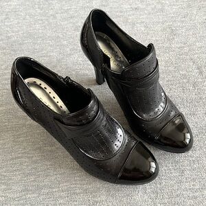 BCBGirls Cherie Black 4 In. Heeled Boots Women 8M Leather Upper Perforated Zip