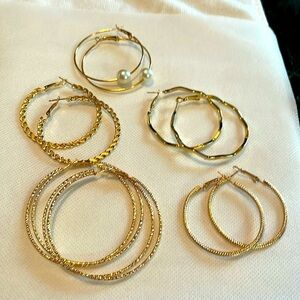 5 Pair Earring Set - Goldtone - Large Hoops NWOT