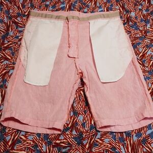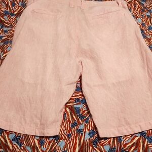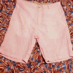 AMIANI Men's Pink Bermuda 100% Linen Shorts size 34, Stay cool and stylish with these pink linen shorts, side pockets and back.Perfect for casual outings.