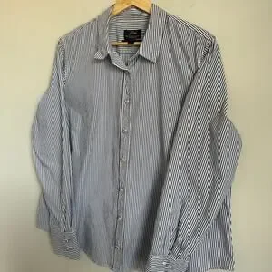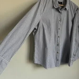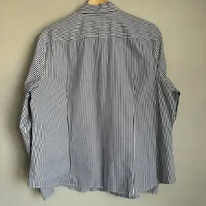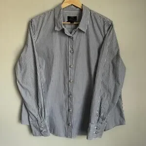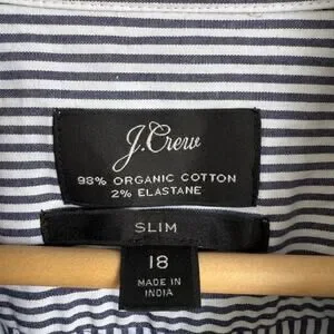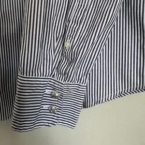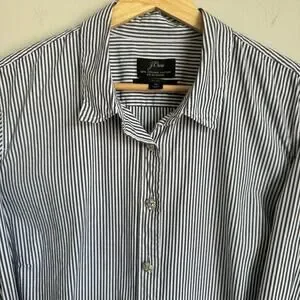 J.Crew Women’s Button Down Shirt Size 18 Navy White Stripe Jeweled Buttons Organic Cotton
