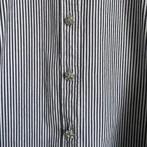 J.Crew Women Button Down Shirt Size 18 Navy White Stripe Jeweled Buttons Cotton
