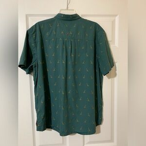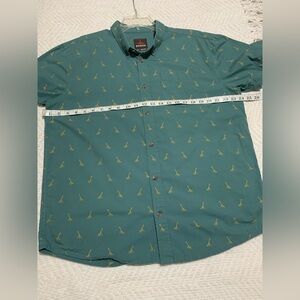 Prana Broderick Giraffe Embroidery Short Sleeve Men’s Button Down Shirt Teal L