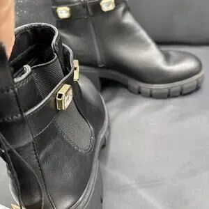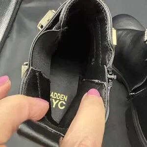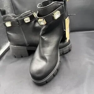 Madden NYC Women's Black Rhinestone Chain Zip Lug Sole Chelsie Ankle Boots Sz 9
