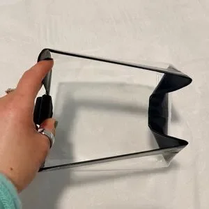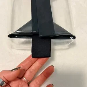 Size medium. Stylish clear clutch with black geometric accents. Perfect for a modern look.