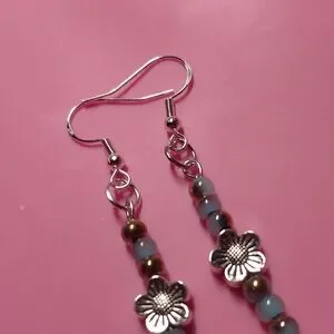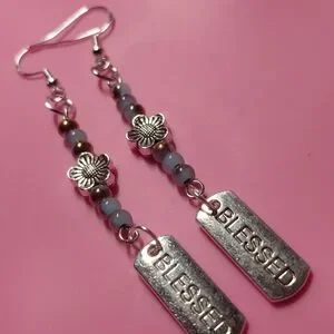 These elegant dangle earrings feature a 'Blessed' charm in silver, complemented by gold accents and floral details. Perfect for adding a touch of grace to any outfit.