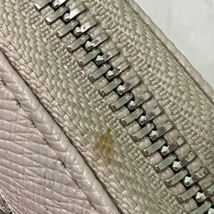 Elegant GUESS wallet in beige. Features gold logo plate. Compact and stylish design.