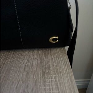 Coach Elegant black leather handbag with a sleek design. Perfect for any occasion.