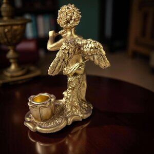 These vintage angel candle holders exude timeless elegance with their intricate detailing, resin craftsmanship, and gold finish. Perfect for a classic ambiance.