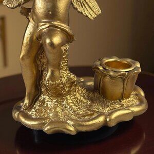 Vintage Gold Angel Candle Holders With Wings & Flute Design 6" X 4" Resin Taper