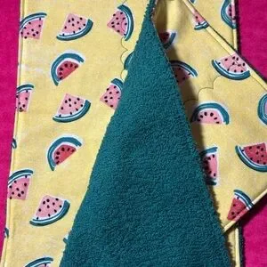 🍉2 NoPaper Hand Towels with a beautiful green terry cloth on one side and watermelon print on the other.
