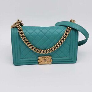 CHANEL Boy Green Leather Shoulder Bag 2650-080524