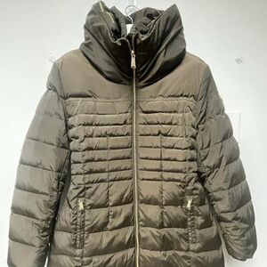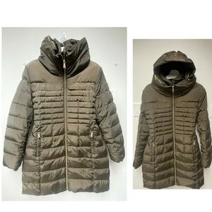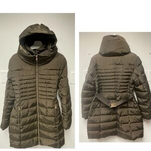Michael Kors Coat Jacket Puffer Hood Hood Detachable Chocolate Brown Gold Size L