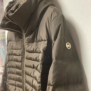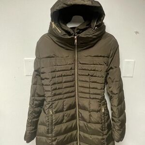Michael Kors Coat Jacket Puffer Hood Detachable Chocolate Brown And Gold Size L $240