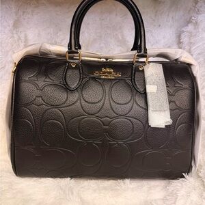 Chic Coach satchel with embossed leather. Features sturdy handles and elegant design.