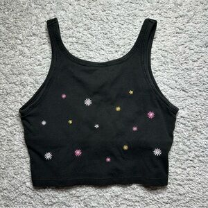PINK Victoria's Secret Crop Top - Black - Embroidered Flowers - Summer - Casual - Party - Floral - Girly -