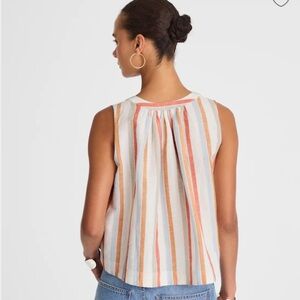 Madewell Button-Front Tank in Linen-Cotton brown Red Blue Stripe