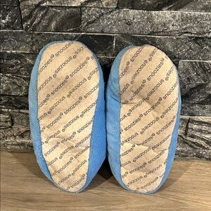 Snoozies Blue Slippers with Cookie and Milk Design Size Large