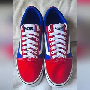 Stylish Vans old school for men. red and blue design. Ideal for everyday wear.they not was used .no tag.no box.