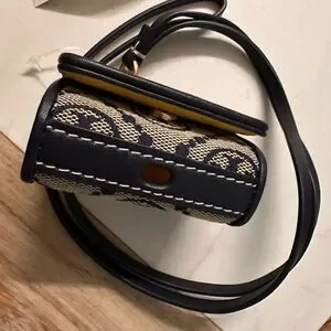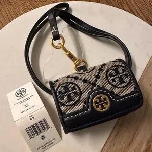 NWT! NEW! Tory Burch T Monogram Jacquard Leather Airpods Case Mini Bag -Navy