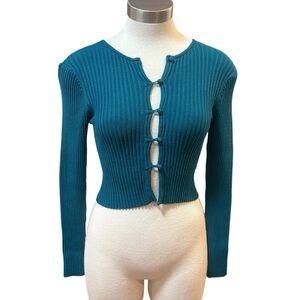 Urban Outfitters Teal Ribbed Cardigan Peyton Fitted Cropped Sz. L