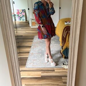 Another versatile dress for all seasons! Dress up or down, sandals or boots! This dress is so comfortable and the pattern is perfectly lively! Size is extra large. For reference I am a regular size small and this fits nicely so depending on desired fit? This can be worn by small, medium or large or xl! Brand new with tags. (Paired with Veja sneakers and Sam Edelman over-the-knee boots, both available in separate listings ❤️)