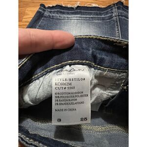 KanCan Mini Jean Skirt Raw Hem Distressed Wash Blue Denim Womens Size 3