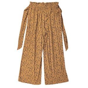 Abercrombie Tan Black Polka Dot Wide Leg Pants Tie Waist Size Medium