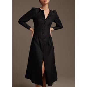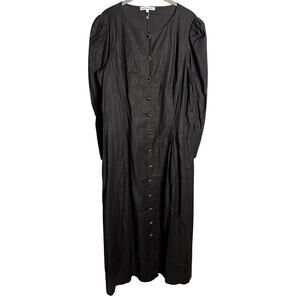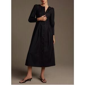 NEW Reformation Halia Long Sleeve Button-Front Midi Dress Size 12 Black Cotton