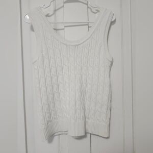 Stylish white cable knit tank top. Perfect for layering or wearing alone.