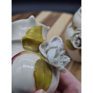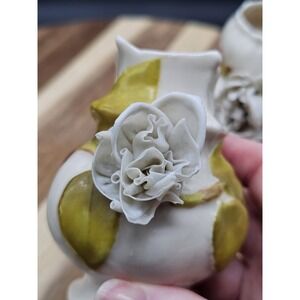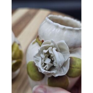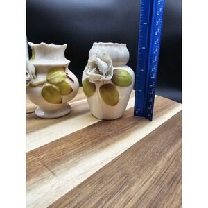 The applied flowers on these vases have some damage as shown in the photos. However because of the crumpled nature its very hard to distinguish.