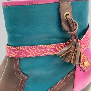 L'ARTISTE Spring Step Sz 41 Ankle Boots Brown Teal Pink Leather Tassel Western