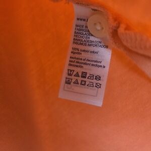 Tommy Hilfiger Men's Orange Pink Polo Size Medium White Piping Logo - small stain on back of sleeves shown in last picture.