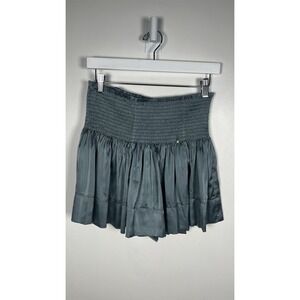 Natural Life Teal Green Smocked Satin Daisy Stretchy Silky Medium Skort Short